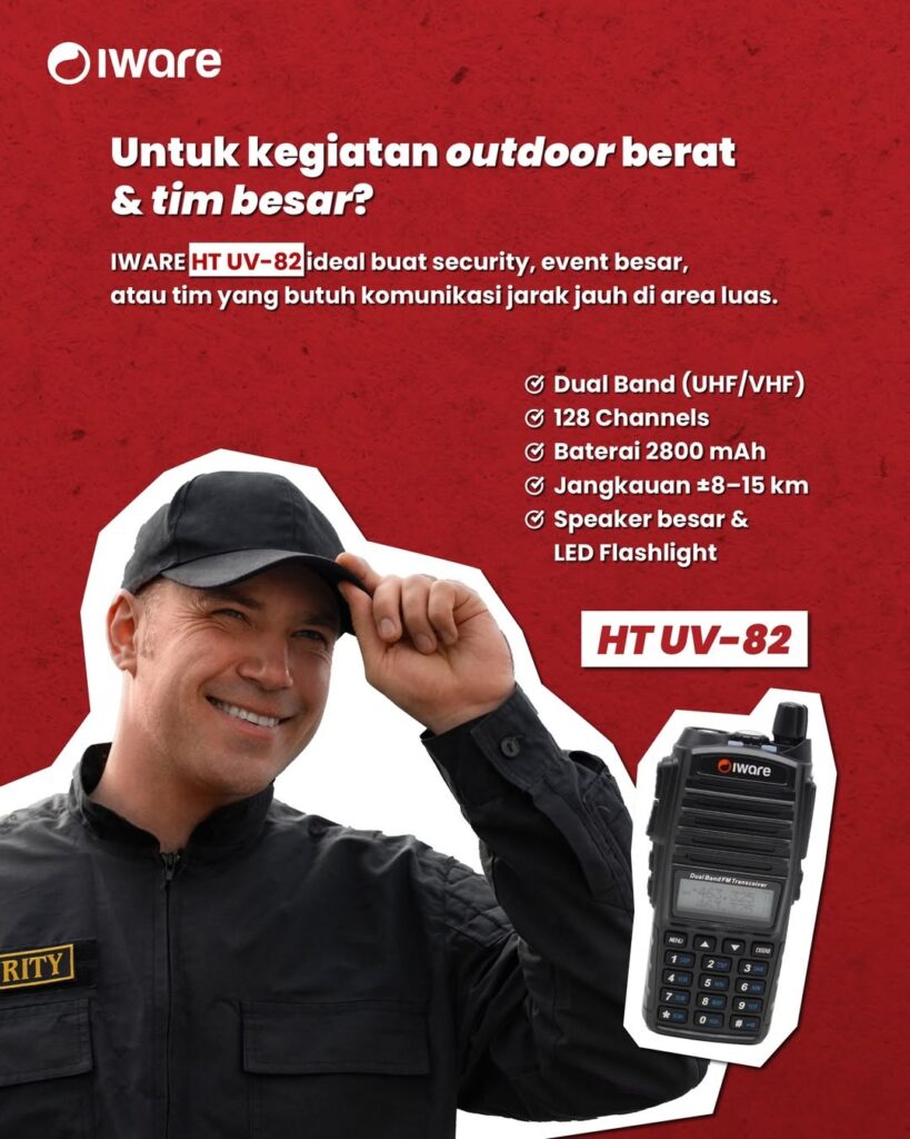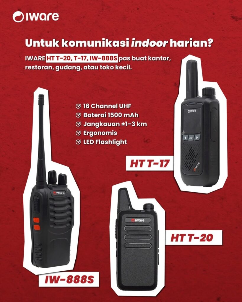 Dengan berbagai keuntungan yang dimiliki Handy Talky, banyak orang mulai mencari penyedia terpercaya untuk perangkat ini. Iware, yang telah berpengalaman di industri elektronik selama bertahun-tahun, siap menghadirkan Handy Talky sebagai salah satu perangkat elektronik andalan. Walaupun tidak semua bisnis memerlukannya, Iware tetap berkomitmen untuk menyediakan HT ekspedisi maupun bisnis ke sektor seperti konstruksi dan manajemen. Didukung pengalaman panjang dan pemahaman mendalam tentang kebutuhan pelanggan, Iware siap menjadi mitra terpercaya dalam mendukung kelancaran operasional bisnis melalui Handy Talky.