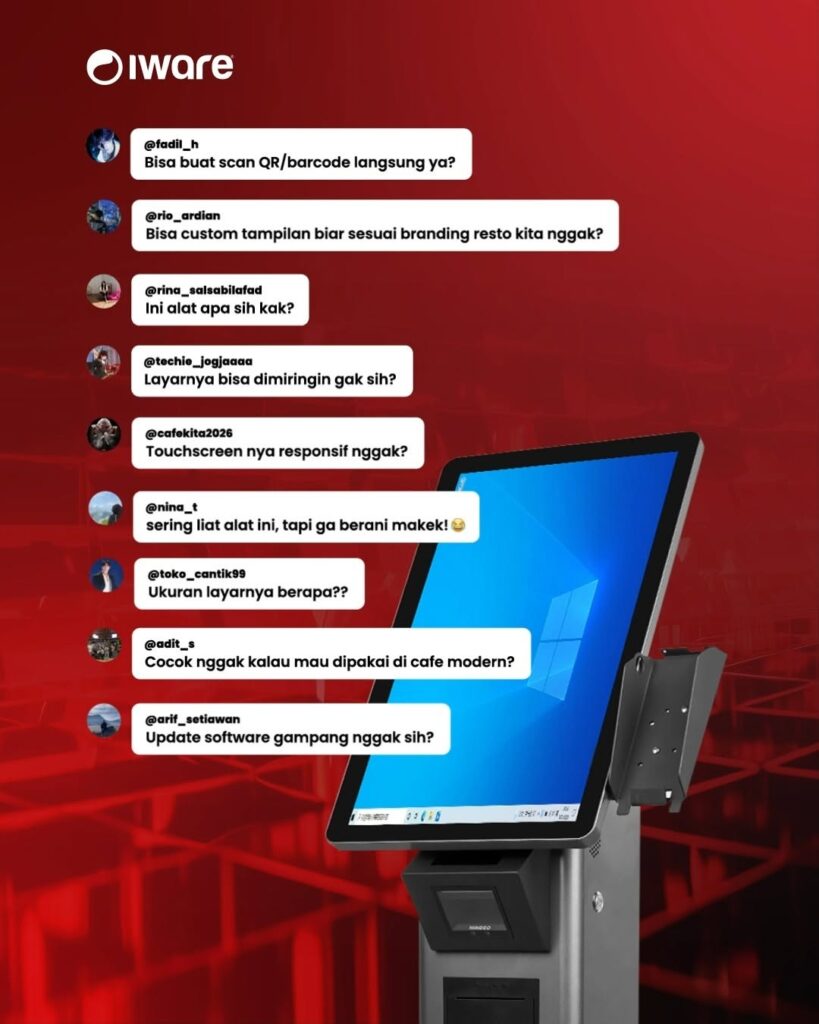 Dengan memahami keunggulan dan perbedaan antara kiosk dan interactive display, calon pelanggan dapat menentukan solusi yang paling sesuai dengan kebutuhan bisnis mereka. Sekarang mereka akan mencari produk dari salah satu perangkat tersebut untuk kebutuhan bisnis mereka. Iware hadir sebagai mitra yang dapat diandalkan dalam penyediaan berbagai perangkat elektronik untuk keperluan bisnis. Sejak tahun 2005, Iware telah berpengalaman menyediakan solusi teknologi bagi berbagai sektor usaha selama lebih dari dua dekade. Berbekal pengalaman tersebut, Iware berkomitmen untuk menghadirkan kiosk dan interactive display yang dapat berfungsi secara optimal serta disesuaikan dengan kebutuhan setiap bisnis. Bagi pelaku usaha yang masih mempertimbangkan pilihan perangkat yang tepat, Iware siap memberikan pendampingan dan solusi yang profesional.