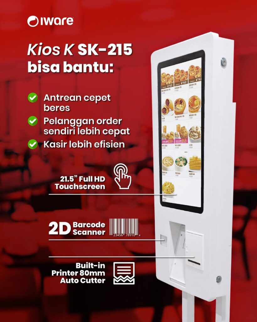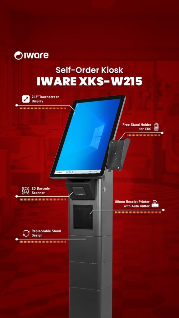 Di sisi lain, Kiosk dirancang dengan fitur yang lebih lengkap untuk mendukung layanan mandiri kepada pelanggan. Bukan hanya menampilkan informasi atau promosi, tetapi kiosk juga dilengkapi dengan berbagai perangkat pendukung yang memungkinkan proses transaksi dilakukan secara independen. Fitur tersebut dapat mencakup layar sentuh, printer thermal, serta integrasi dengan sistem POS All-In-One mobile. Perlengkapan fitur yang dimiliki kiosk membuat perangkat ini lebih sesuai dimanfaatkan oleh berbagai jenis bisnis yang membutuhkan layanan transaksi langsung.