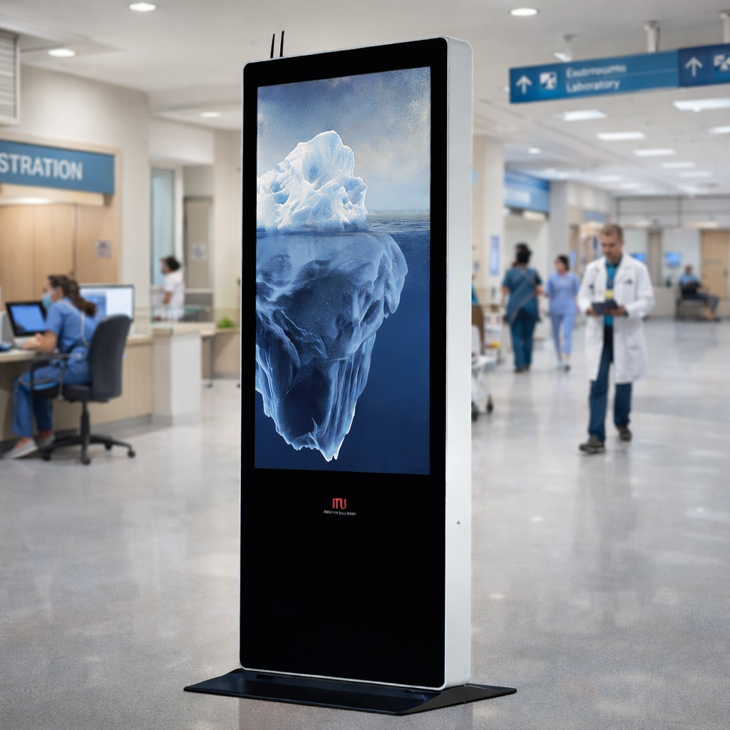 Di rumah sakit tertentu, mereka menawarkan berbagai pelayanan yang mungkin tidak diketahui oleh seluruh pengunjung. Digital signage berfungsi sebagai papan informasi untuk berbagai promosi dari rumah sakit seperti promo check up, jadwal dokter, pelayanan yang disediakan, dan berbagai informasi lainnya. Digital signage juga membantu pasien untuk melihat nomor antrian dan mengarahkan pasien ke ruang dokter dengan mudah.